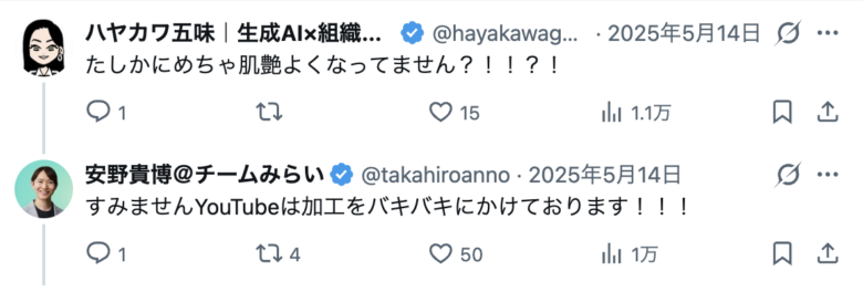 Xに以前、YouTubeは加工をバキバキにしていると返信されていますので、この写真も加工済みの可能性が高いです。