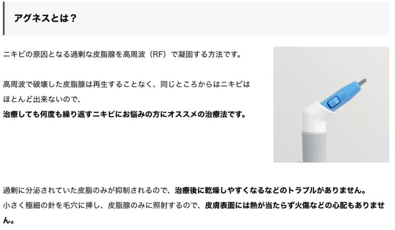 アグネスは美容治療とされており、全額自費になります。
