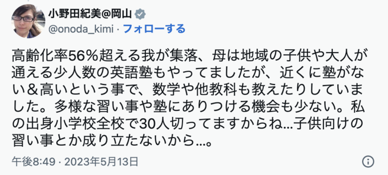 小野田紀美の母は英語の塾をされていたようです。