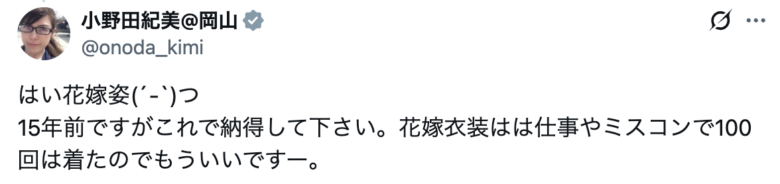 小野田紀美さんは、なんと花嫁衣装を100回以上着られているそうです!