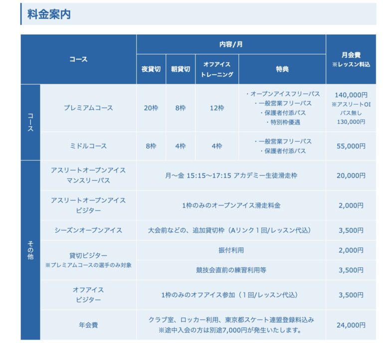 こちらは、高橋さんの出身地、千葉県にあるスケート上のフィギュアスケート教室の料金です。
