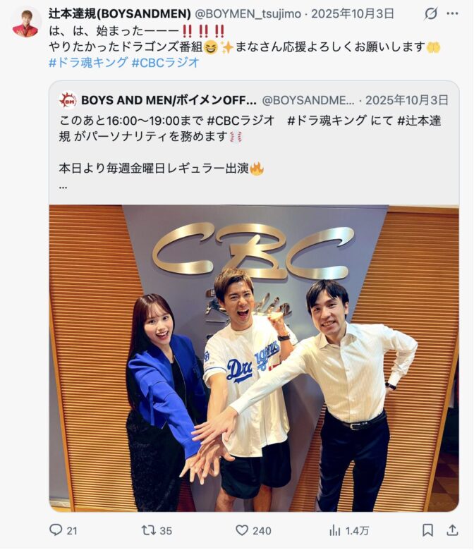 辻本さんは大のドラゴンズファンです!ラジオ番組に出演